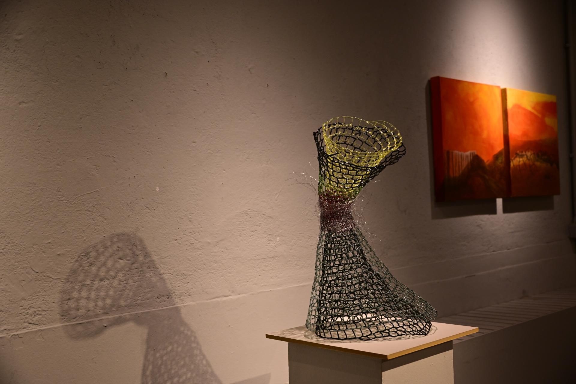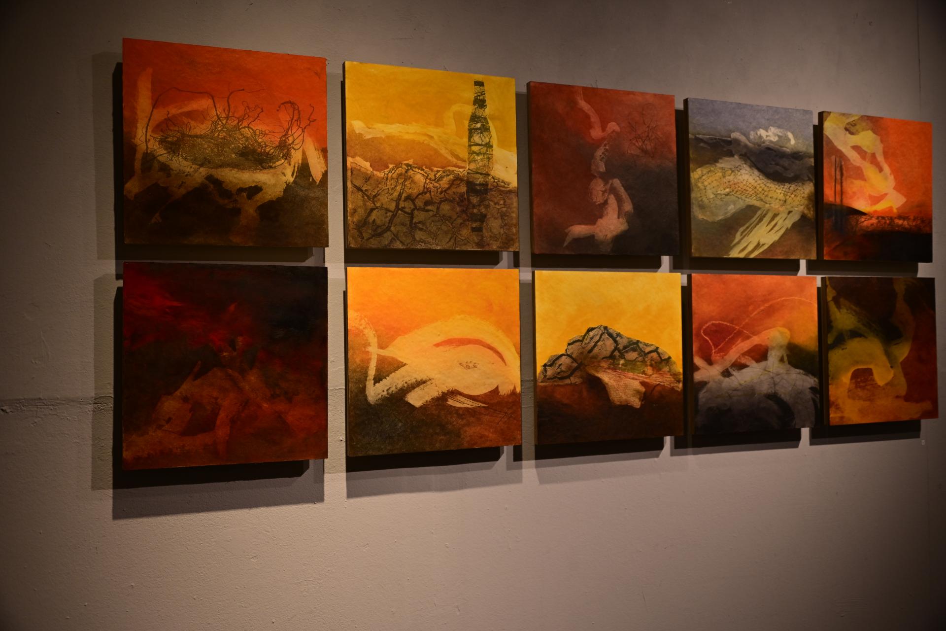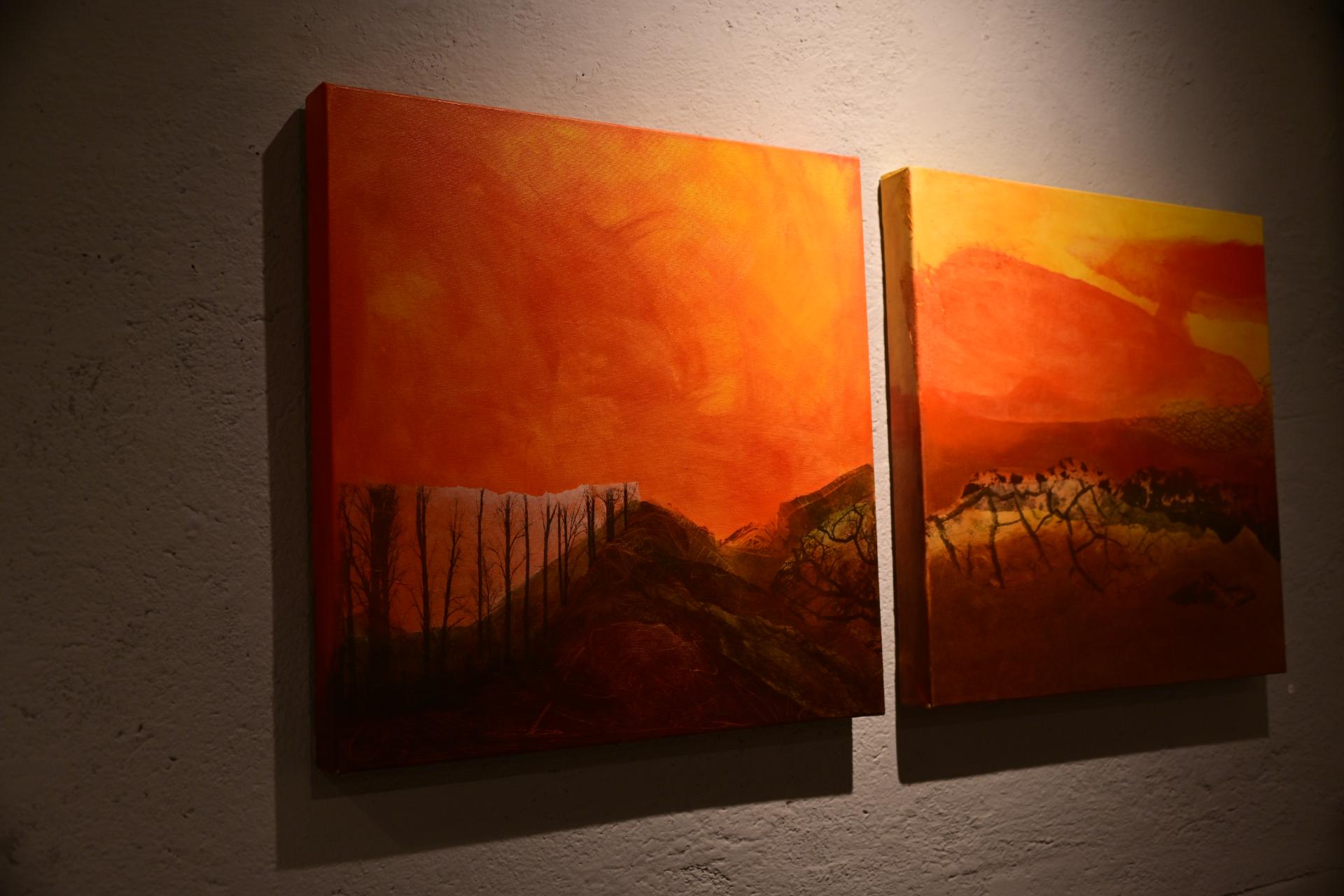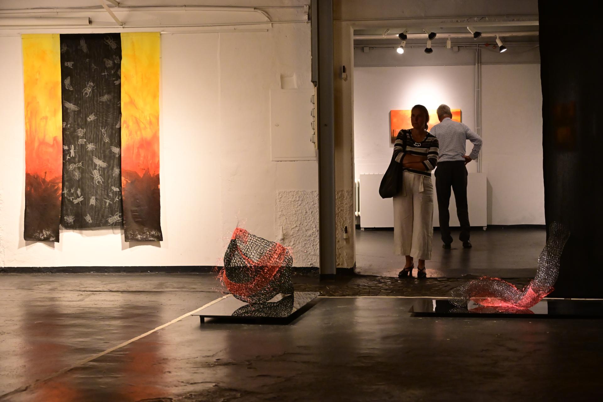 In der Ausstellung „Die Farben des Feuers und des Lichts“ begegnen sich die Arbeiten der Künstlerinnen Sabine Dächert und Nadja Recknagel, die sich mit der symbolischen und transformierenden Kraft von Feuer und Licht auseinandersetzen.