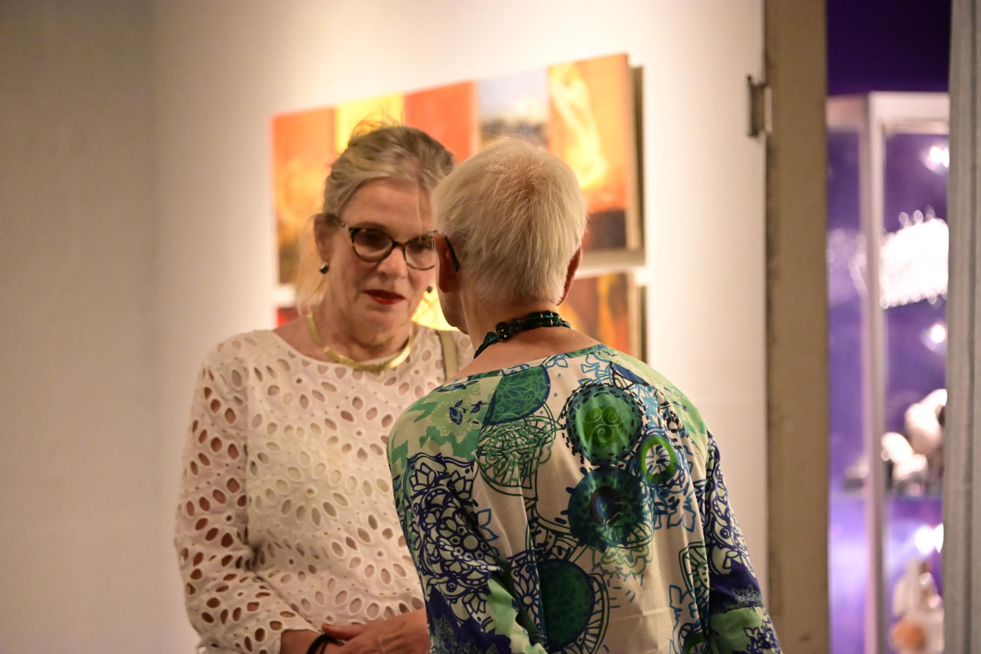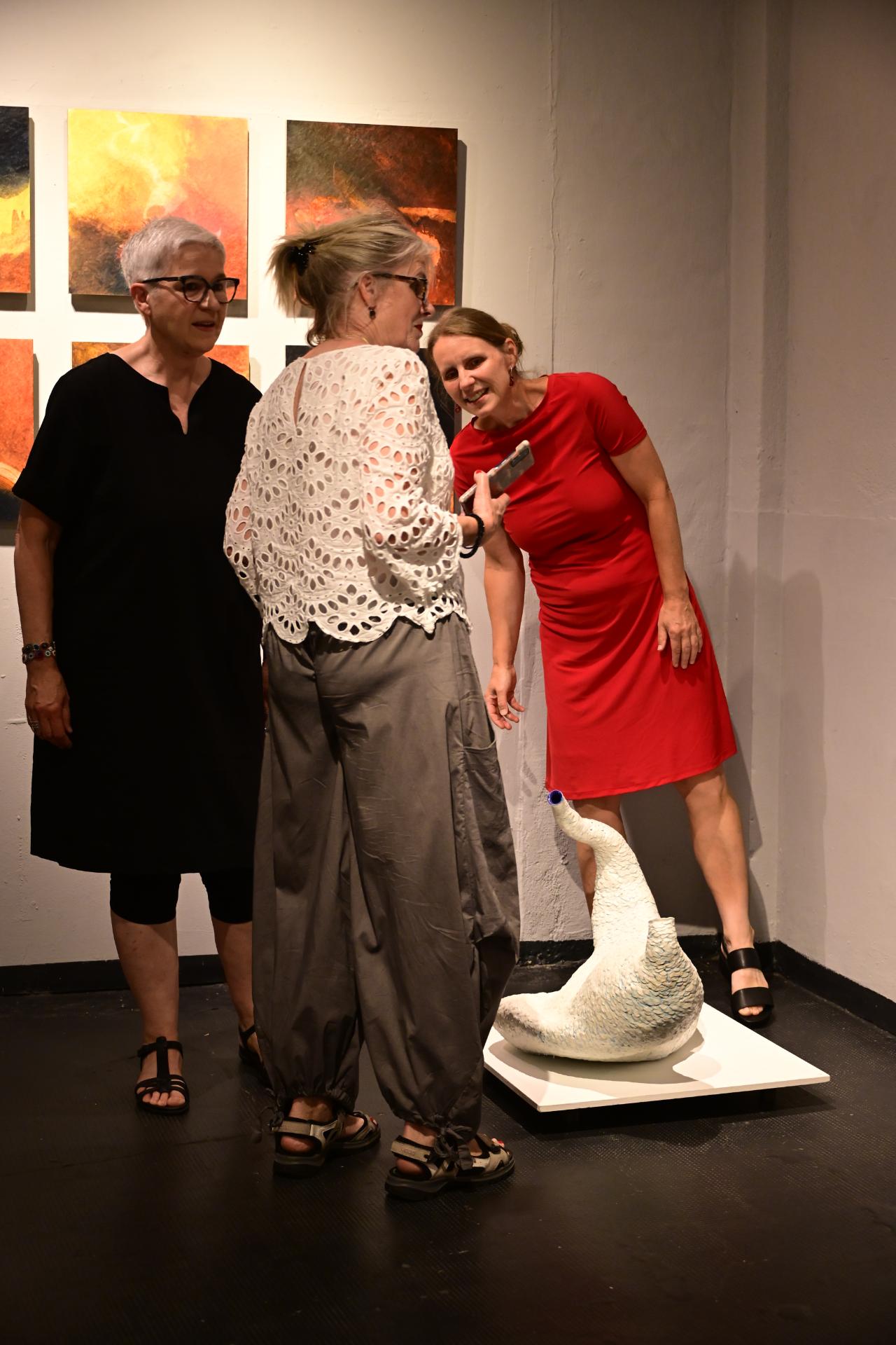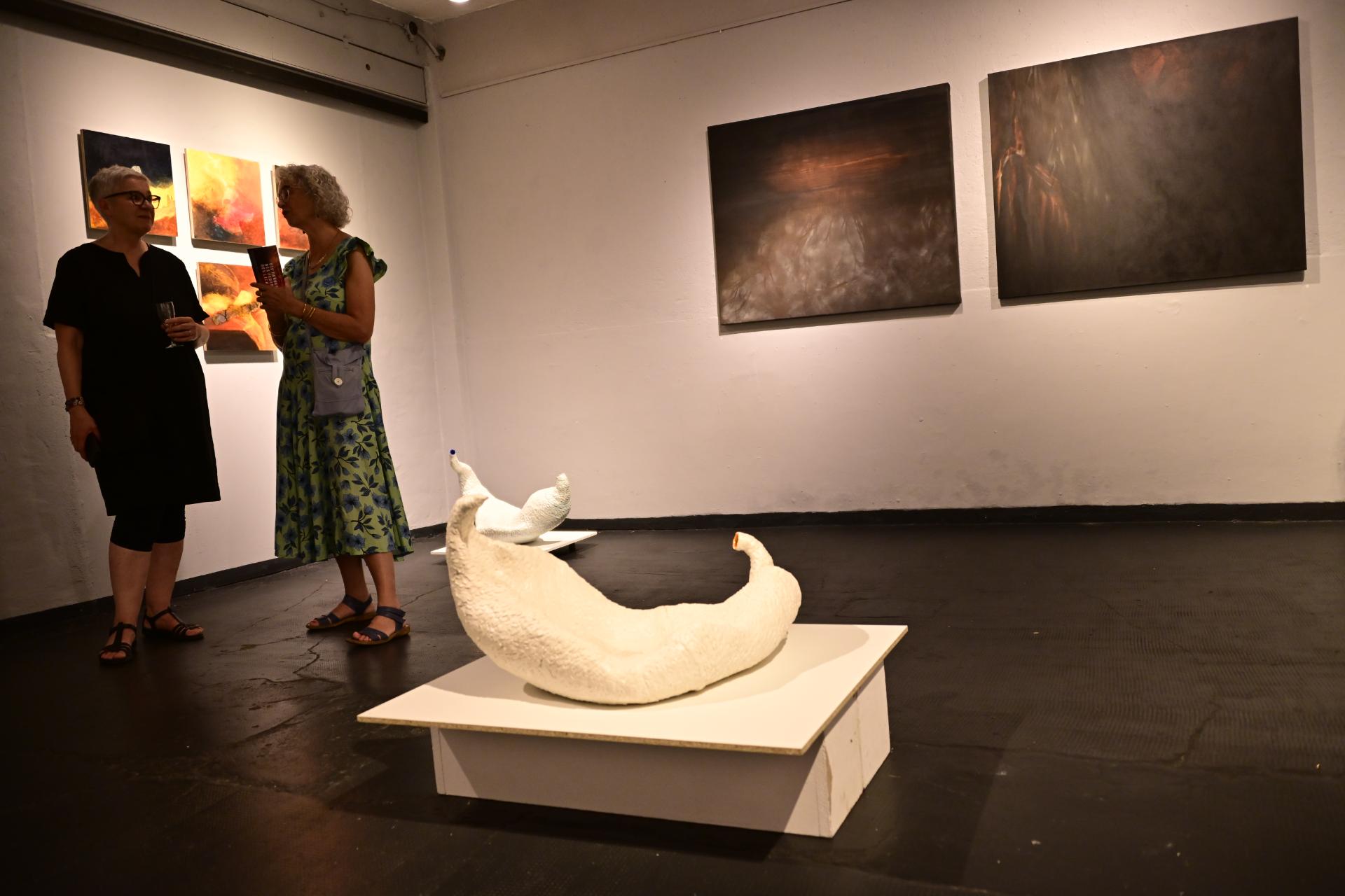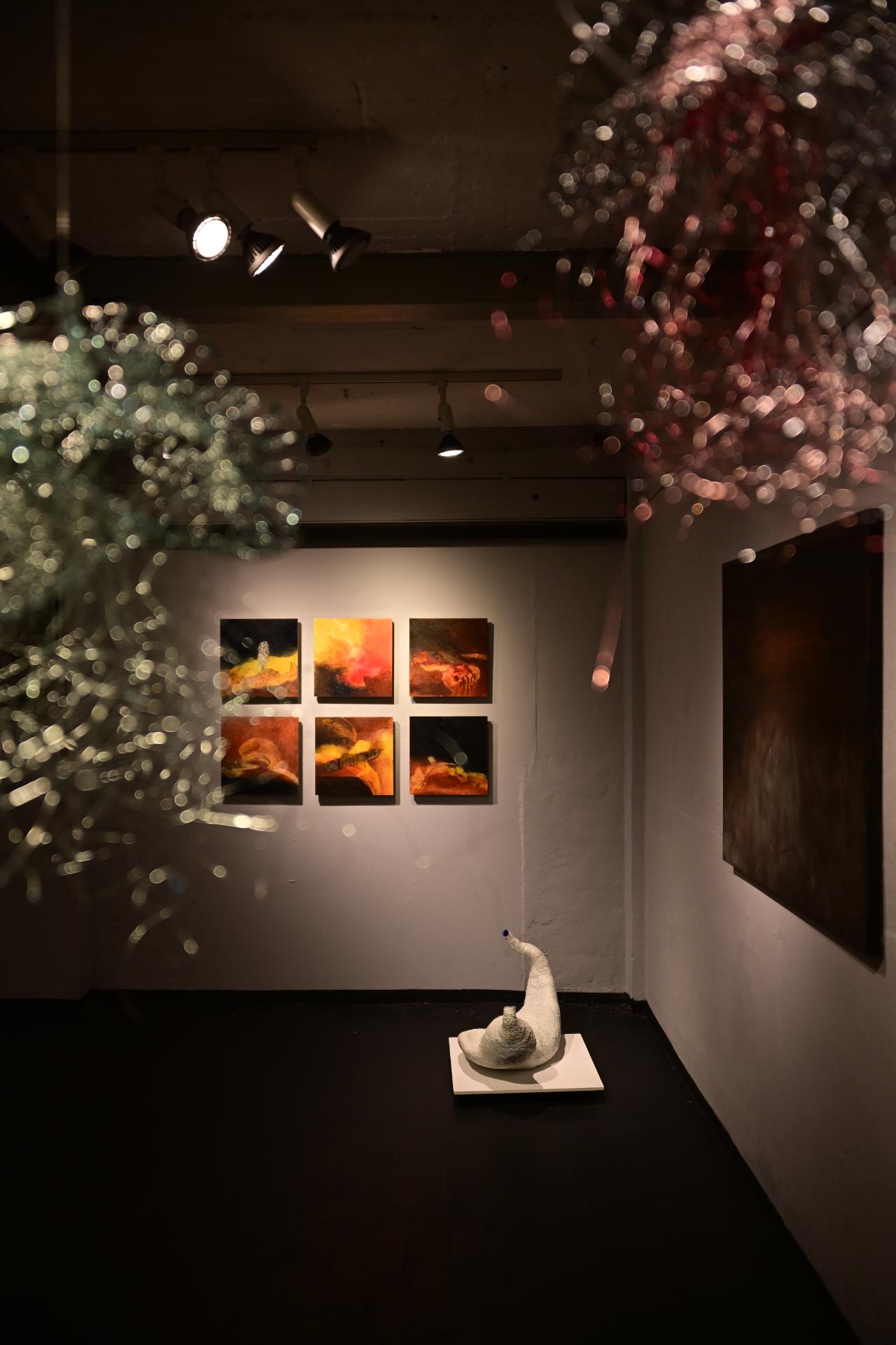 In der Ausstellung „Die Farben des Feuers und des Lichts“ begegnen sich die Arbeiten der Künstlerinnen Sabine Dächert und Nadja Recknagel, die sich mit der symbolischen und transformierenden Kraft von Feuer und Licht auseinandersetzen.
