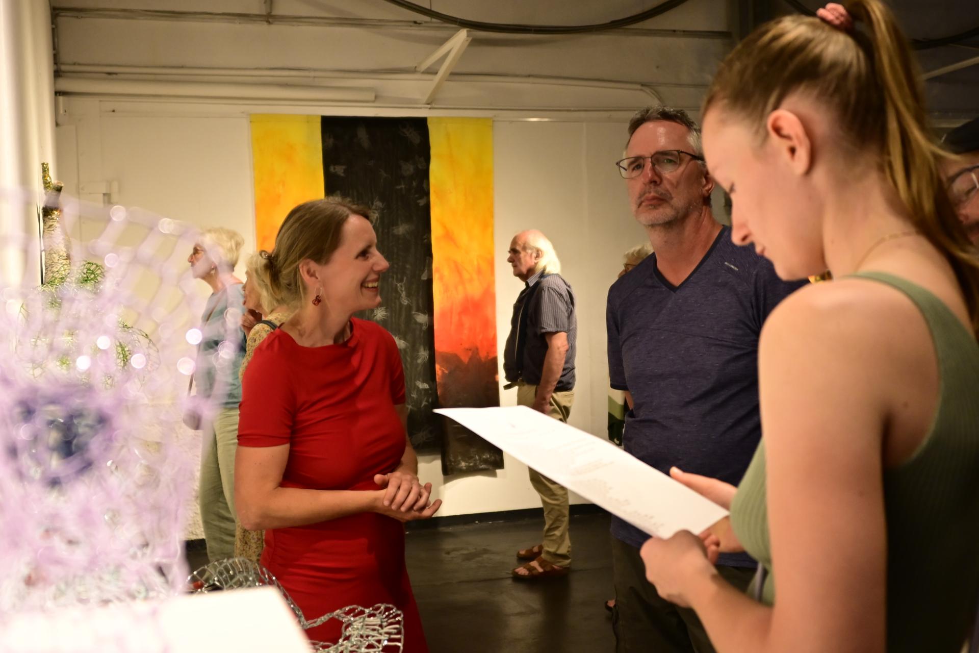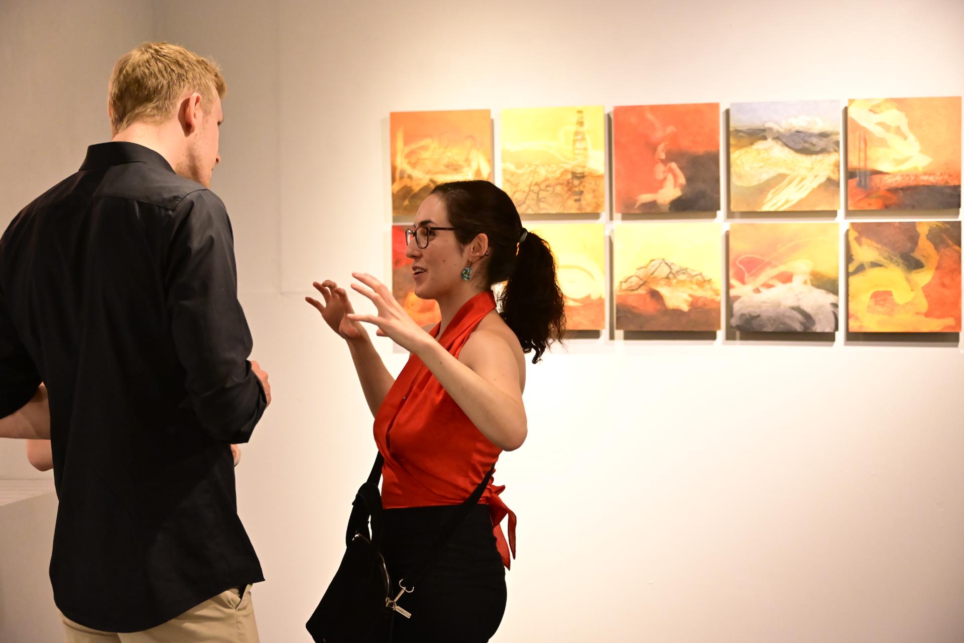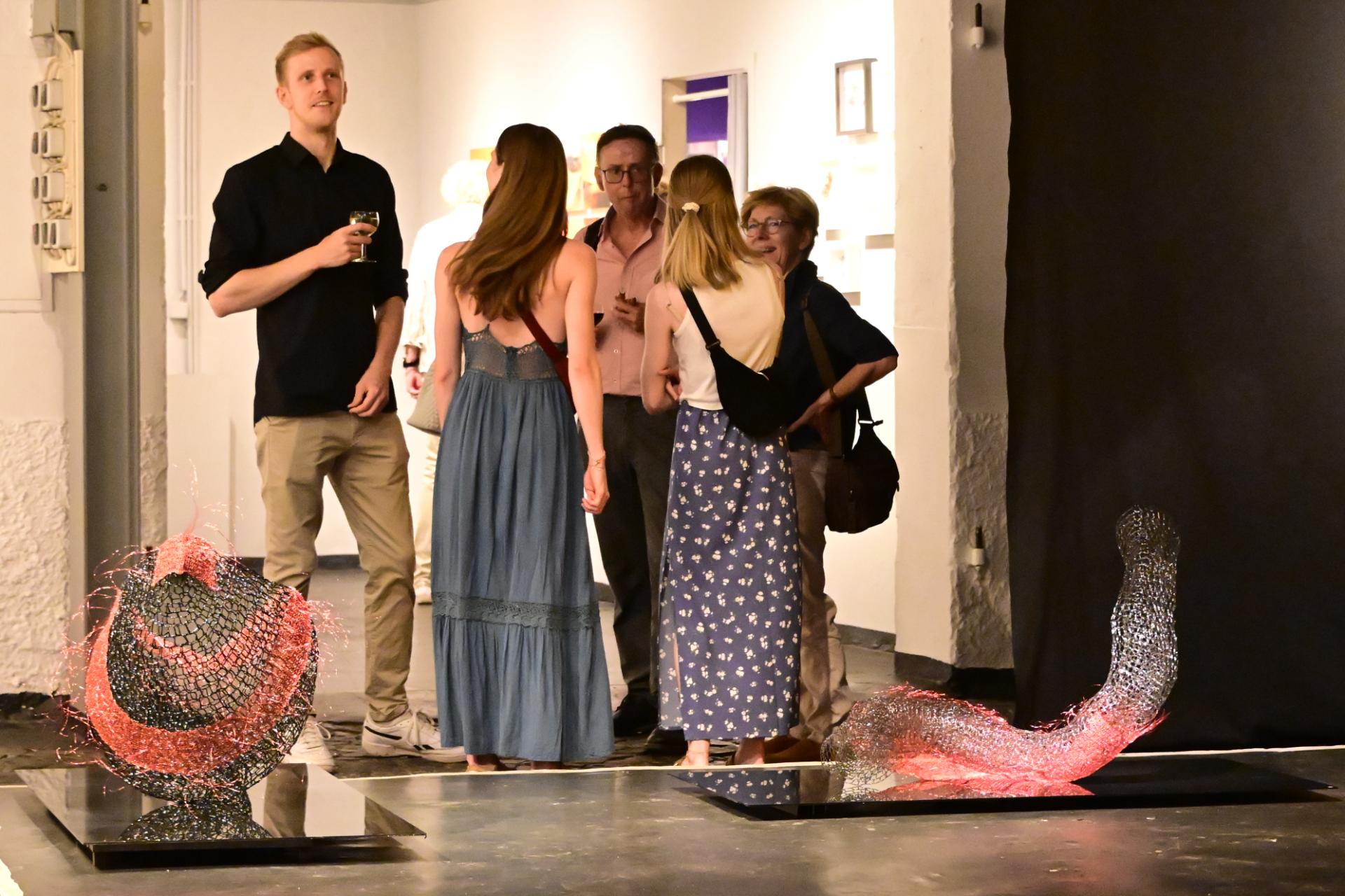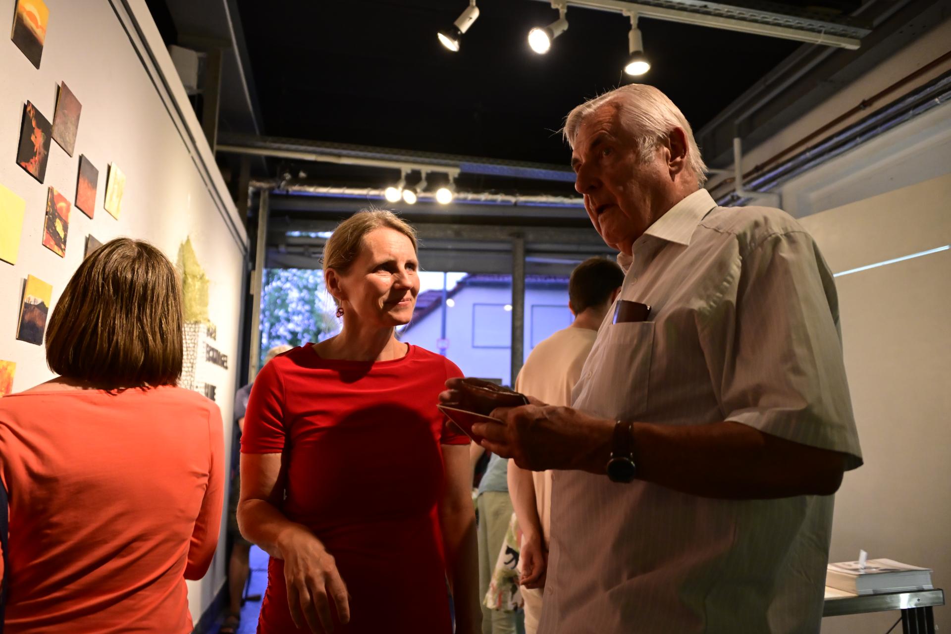 In der Ausstellung „Die Farben des Feuers und des Lichts“ begegnen sich die Arbeiten der Künstlerinnen Sabine Dächert und Nadja Recknagel, die sich mit der symbolischen und transformierenden Kraft von Feuer und Licht auseinandersetzen.