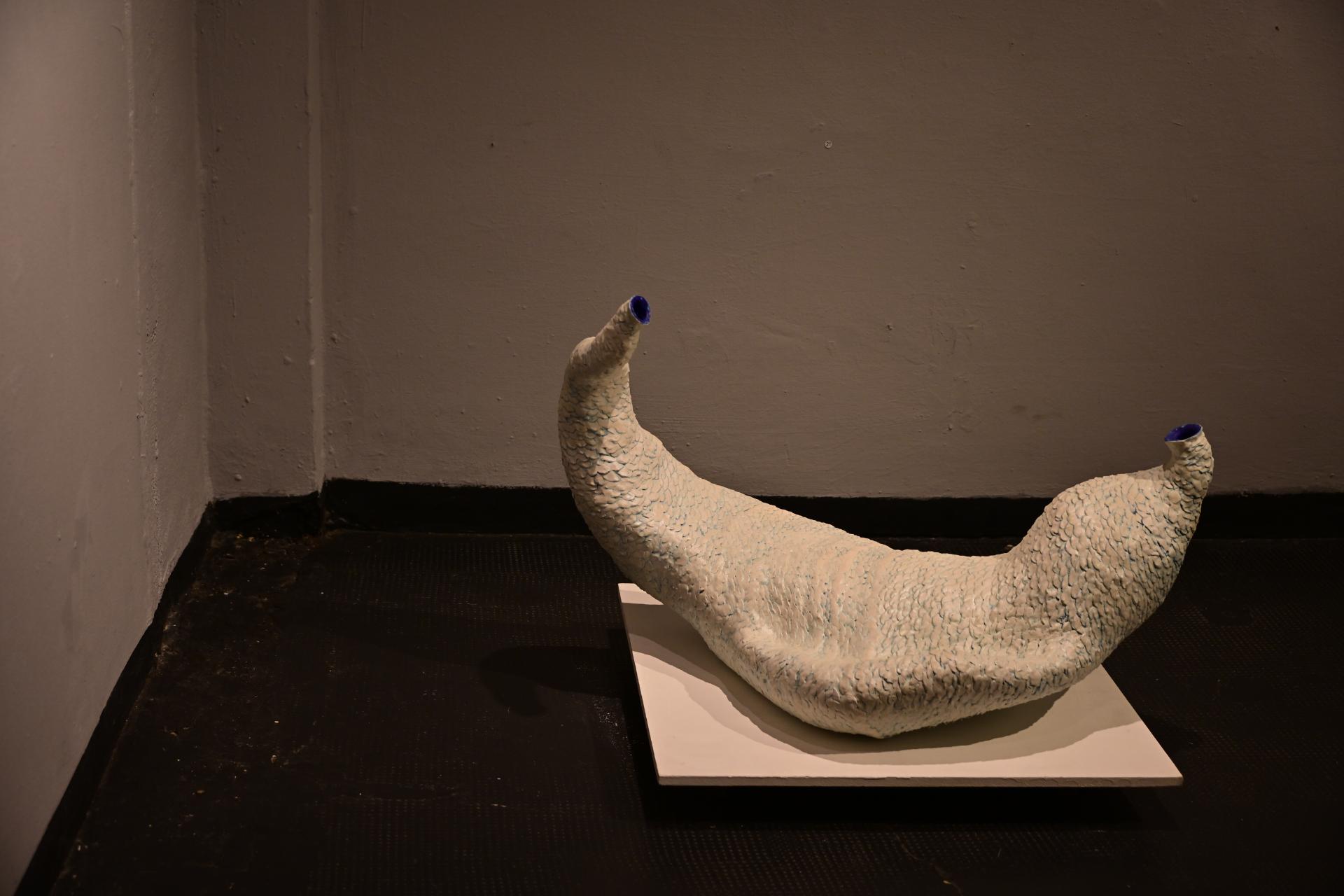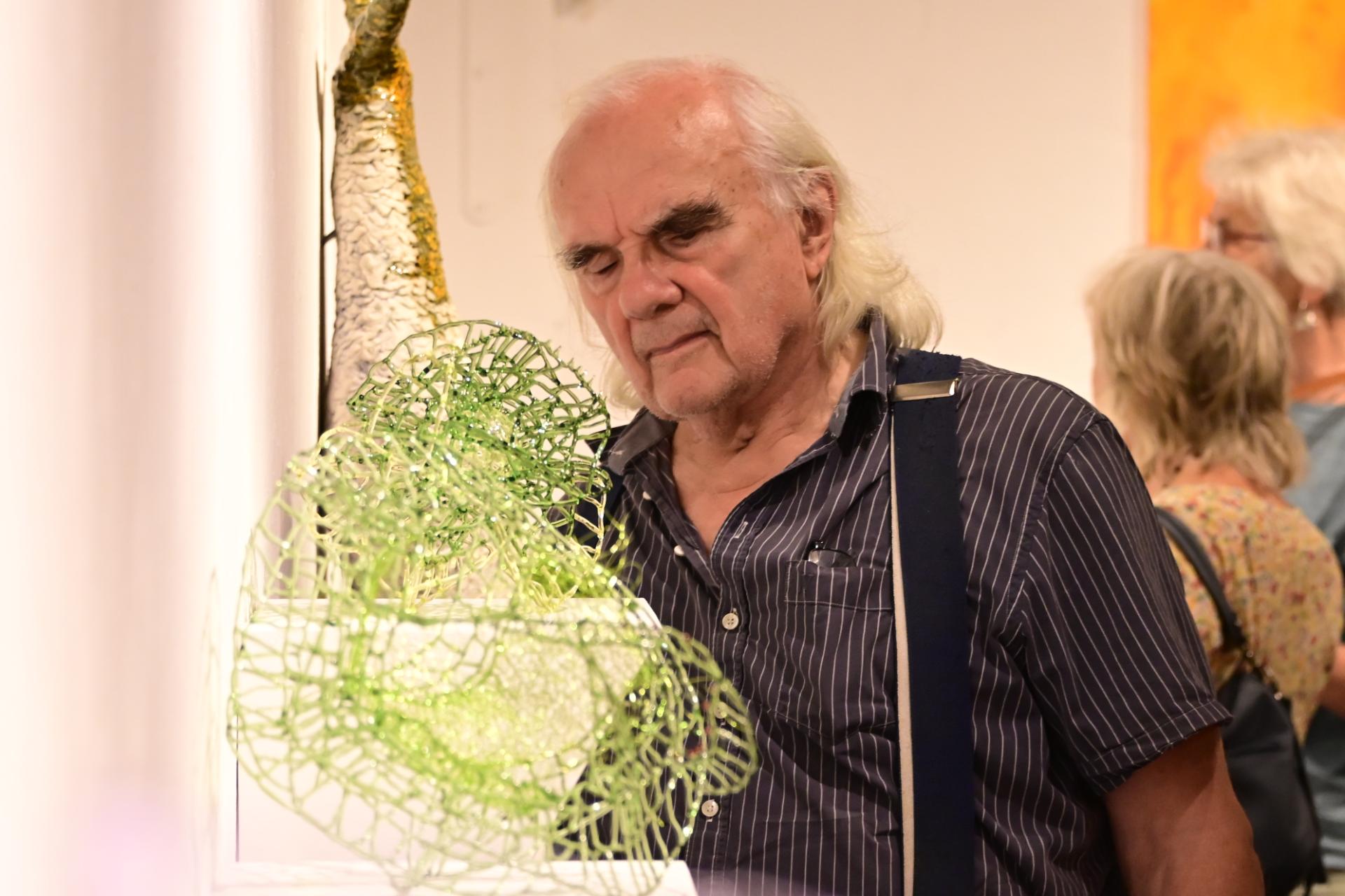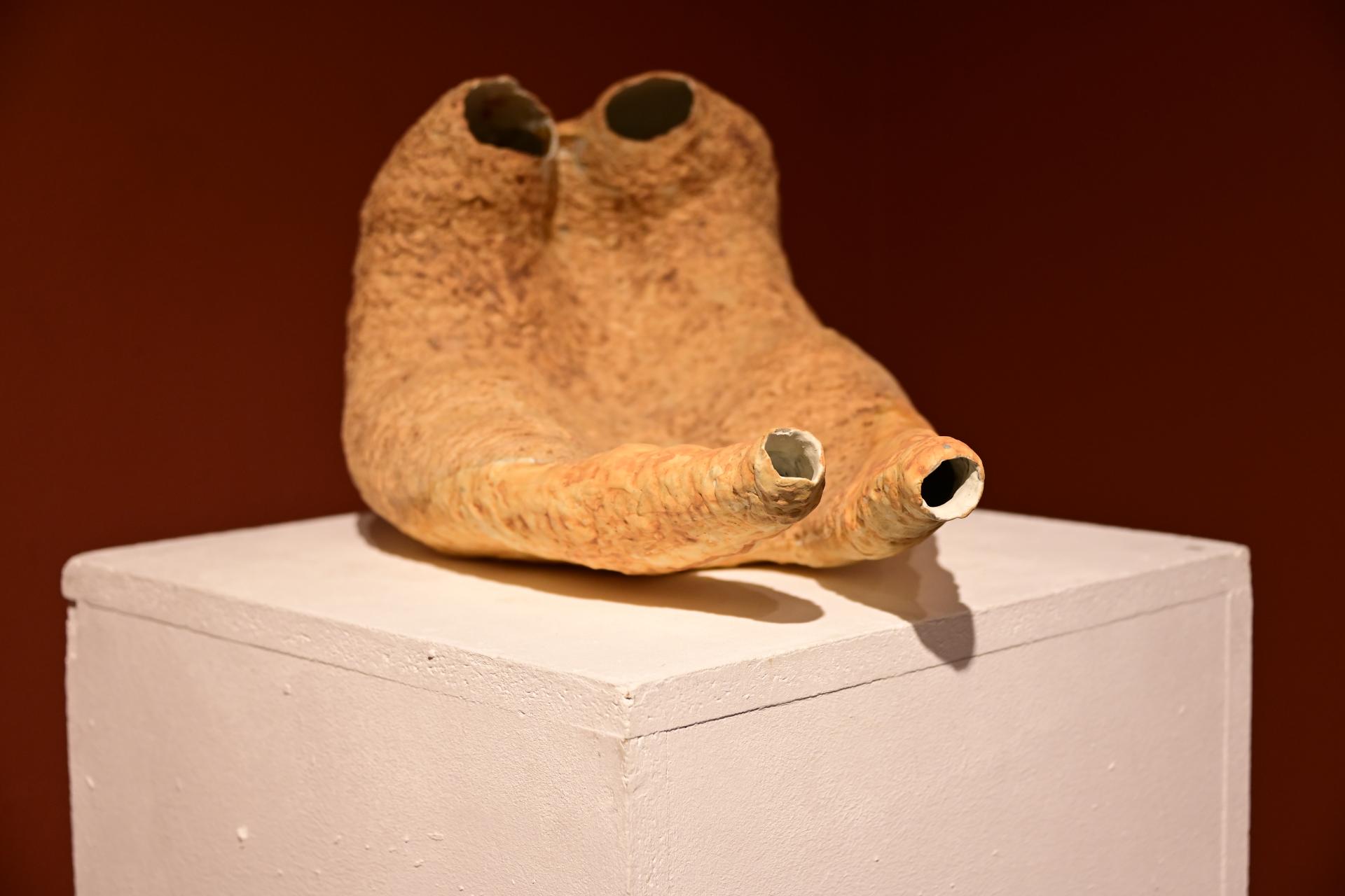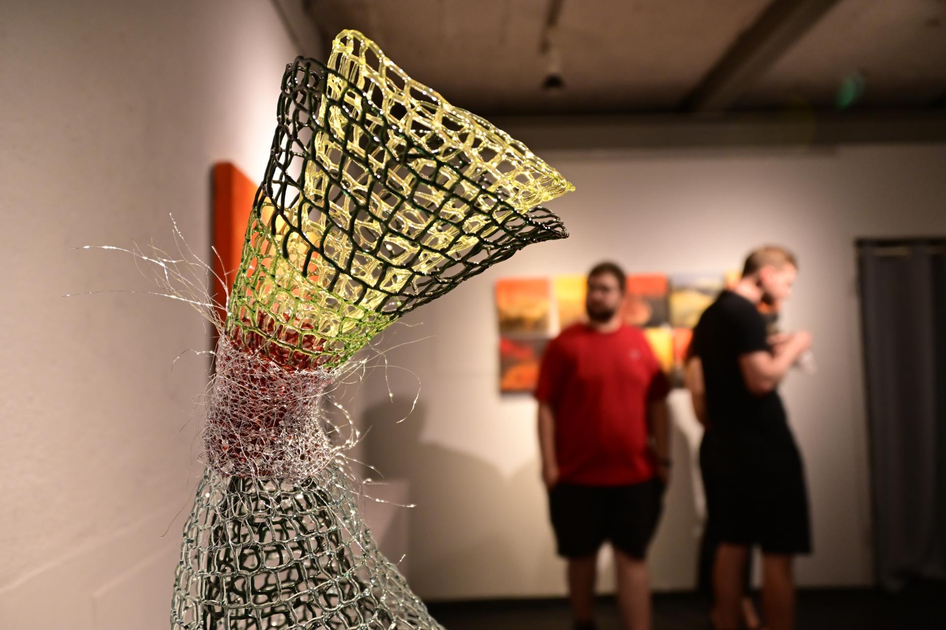 Nadja Recknagel fängt in ihren Glas- und Keramikskulpturen die fragile Schönheit der Natur durch filigrane Netzstrukturen und erdverbundene Formen ein. Recknagels Glasobjekte, die aus heiß geschmolzenen Glasstäben entstehen, erinnern an Pflanzenfasern und Nervengeflechte, während ihre Keramiken organische Strukturen präsentieren, die an fossile Formen erinnern.