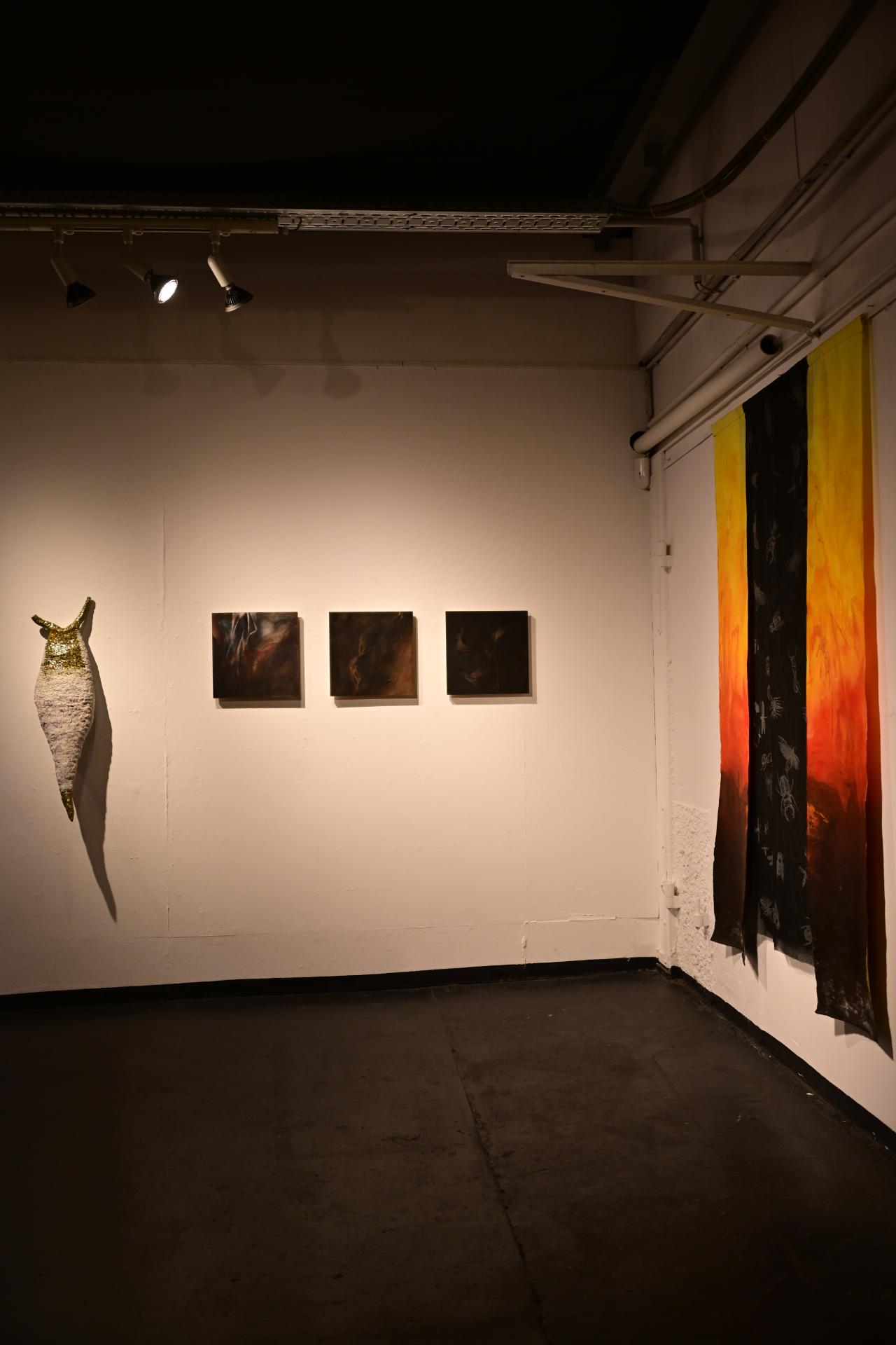 Dächert fängt in ihren Collagen und der Slow-Motion-Videoinstallation die Dynamik und hypnotische Wirkung des Feuers ein und thematisiert die ökologischen Auswirkungen von Bränden. Beide Künstlerinnen verbinden ihre Werke mit der Reflexion über die transformative Kraft des Feuers, das sowohl schöpferisch als auch zerstörerisch wirkt. Die Ausstellung lädt dazu ein, die facettenreiche Beziehung zwischen Feuer, Licht und Natur zu erleben und über die Verantwortung des Menschen gegenüber der Umwelt nachzudenken.