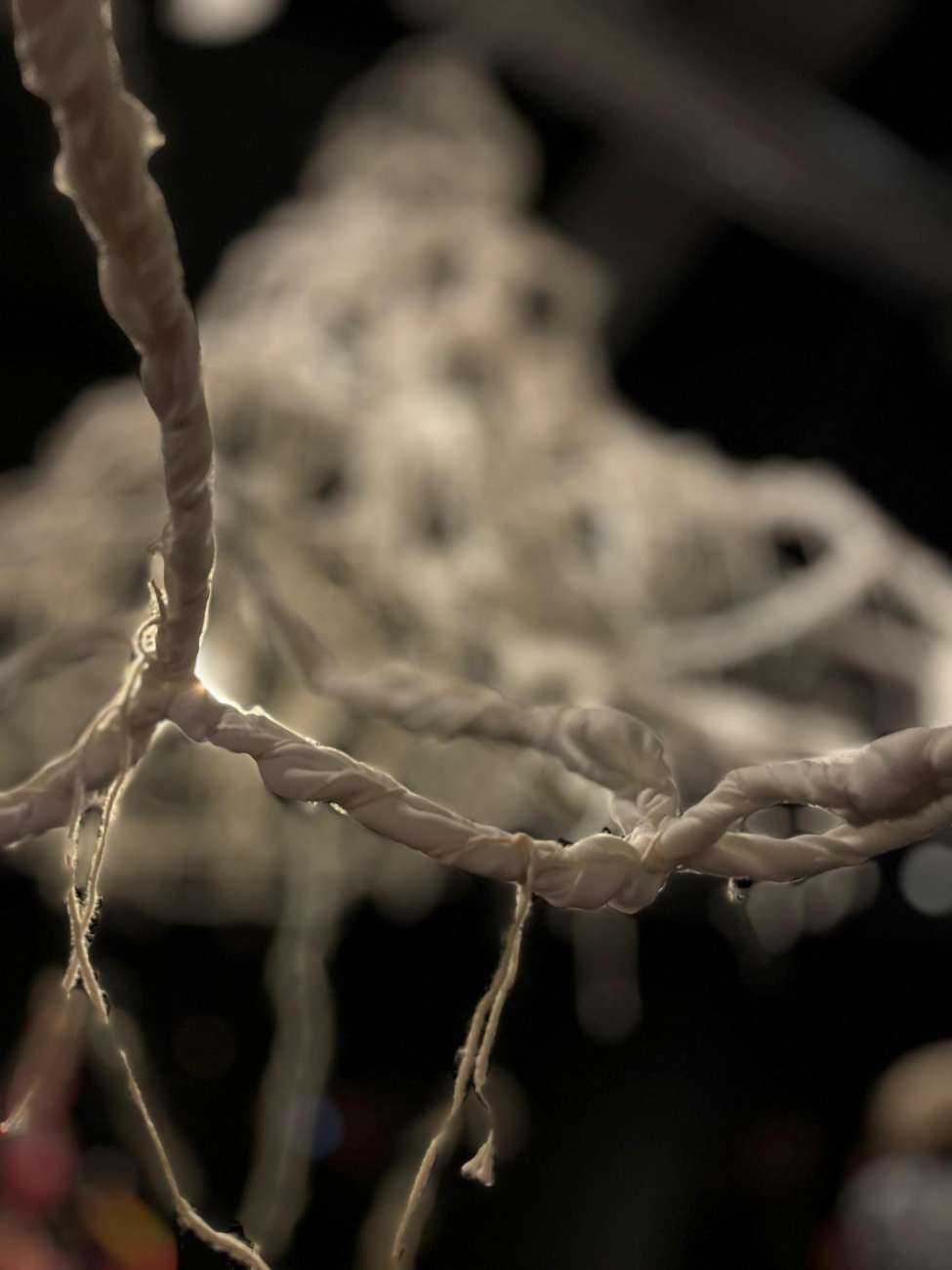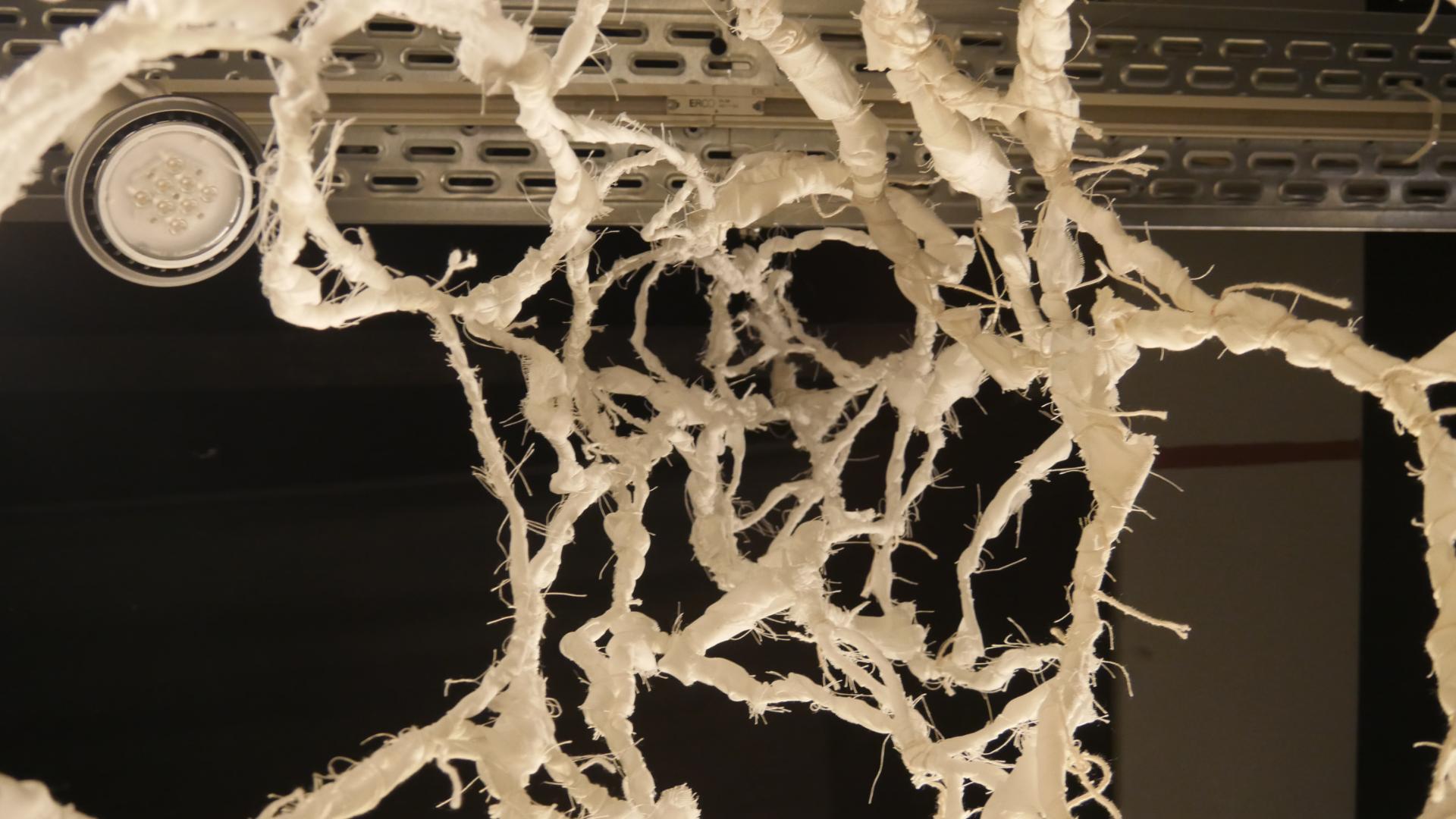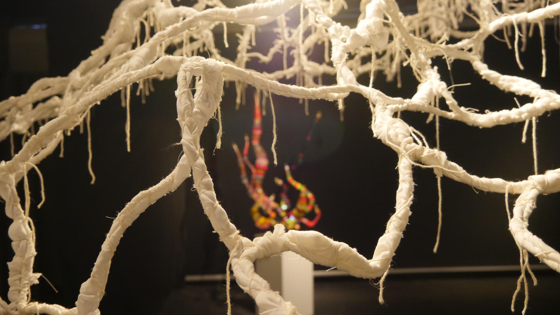 Annabel zeigt unterschiedliche Werke, unter anderem eine großformatige Textil-Installation, welche frei im Raum hängt, aber auch einige Videos und kleinere Wandinstallationen. Die Werke befassen sich mit Materialität, Strukturen und dem Thema der Transformation.