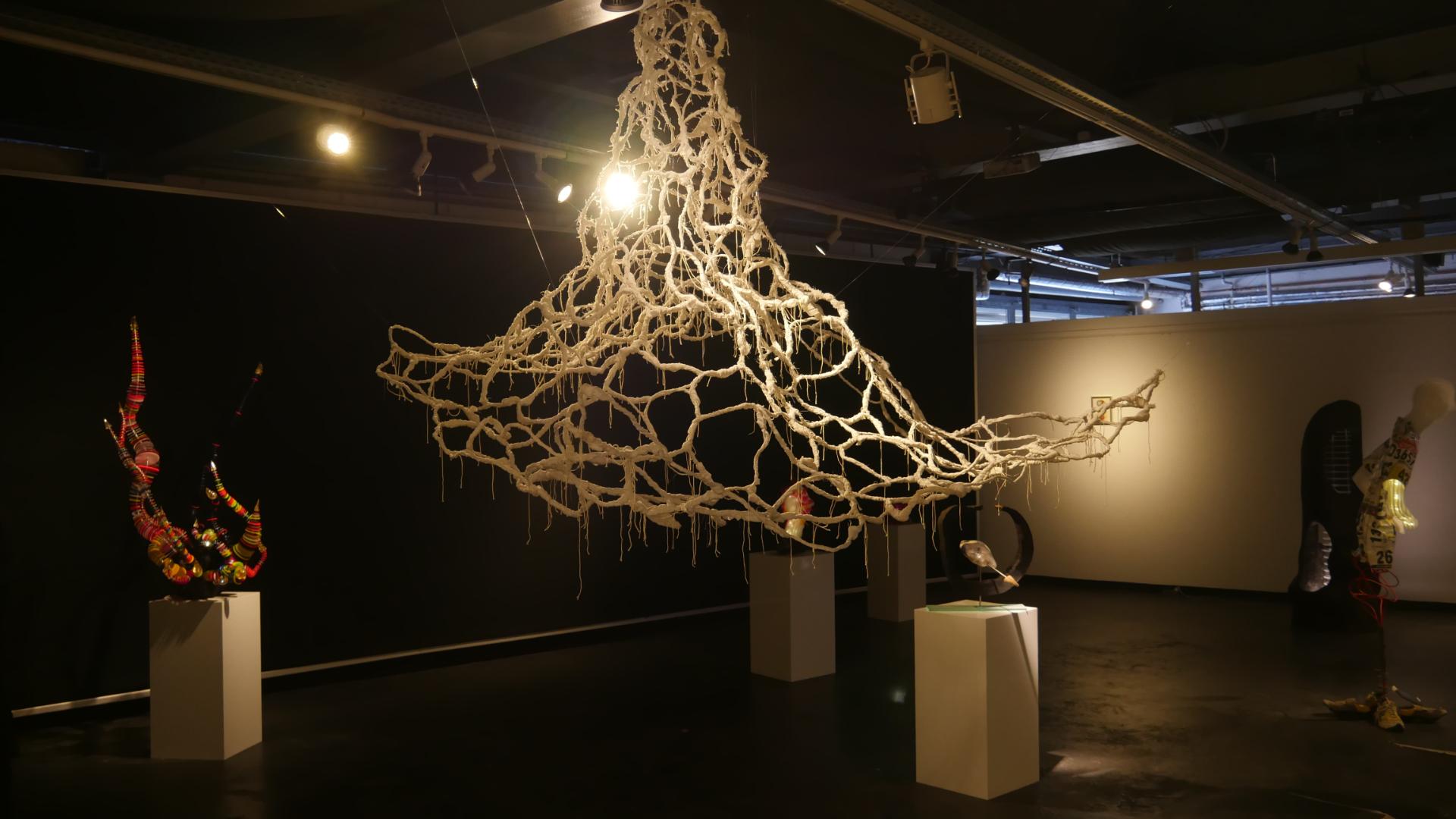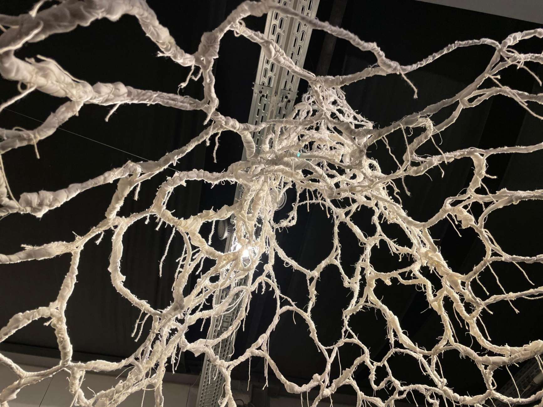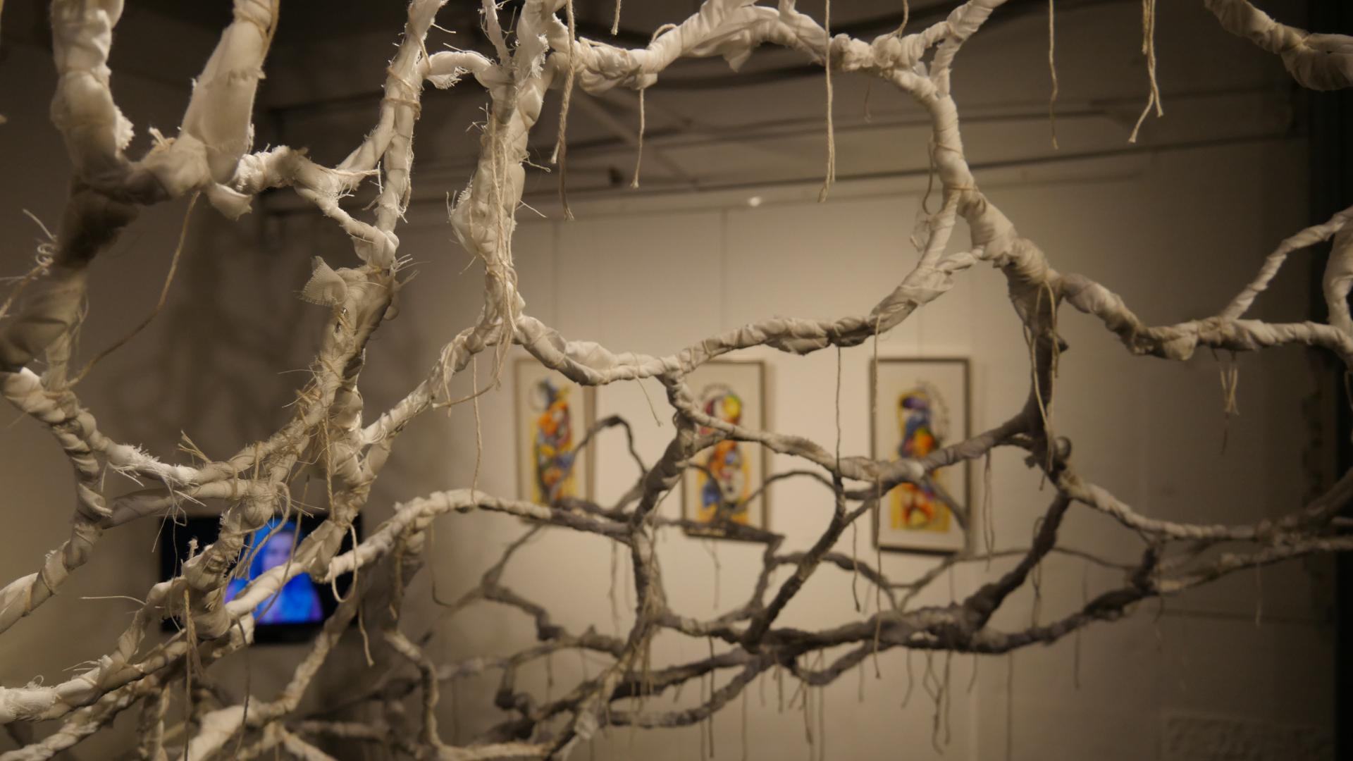 Annabel zeigt unterschiedliche Werke, unter anderem eine großformatige Textil-Installation, welche frei im Raum hängt, aber auch einige Videos und kleinere Wandinstallationen. Die Werke befassen sich mit Materialität, Strukturen und dem Thema der Transformation.