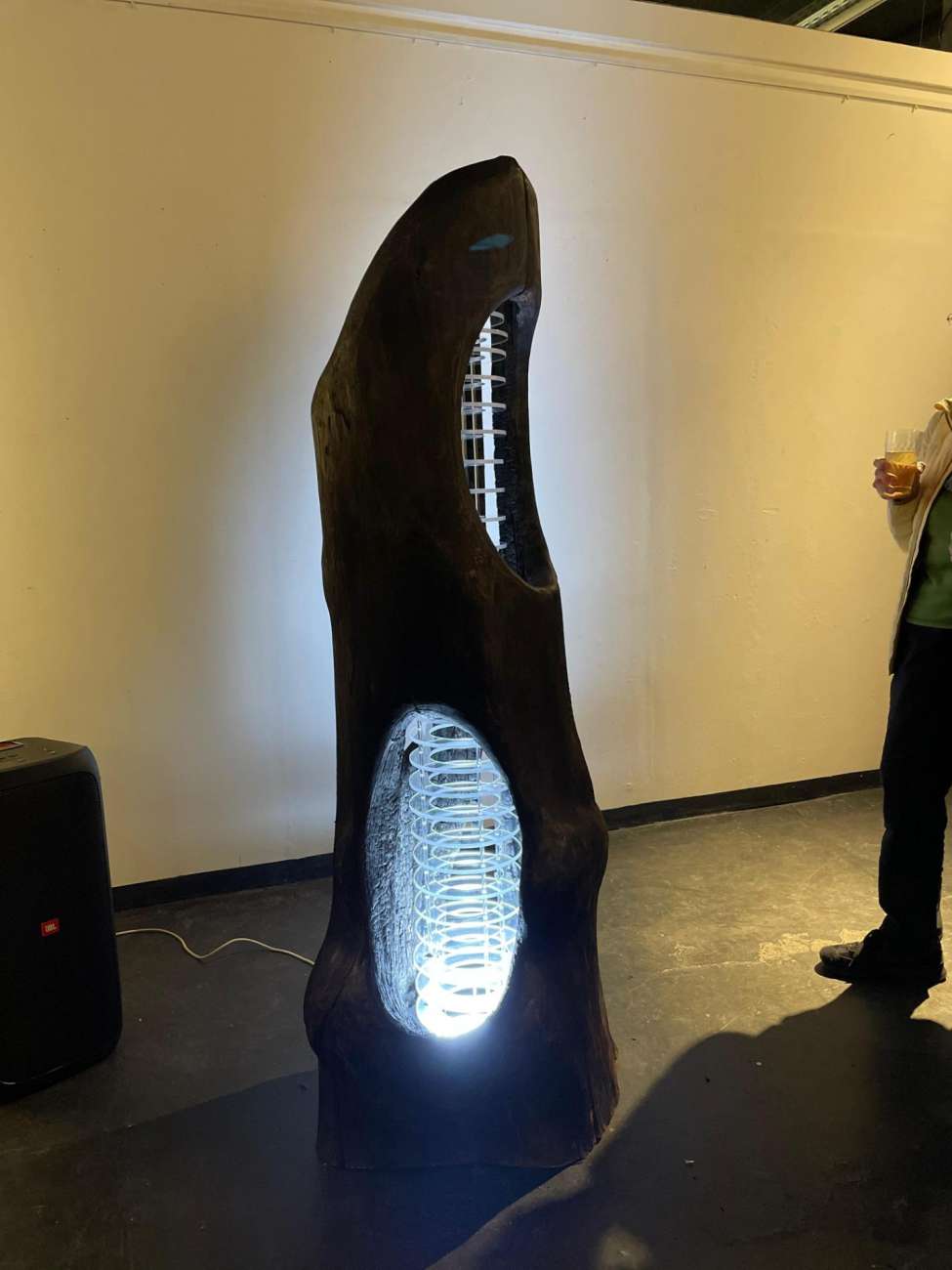 Andreas zeigt neben experimentellen Videoarbeiten und einer preisgekrönten Dokumentation zum ersten Mal große Plastiken aus Acrylglas, die ausgehend von Holzfundstücken, die ergänzt mit LED-Lichtakzenten eine Verbindung zwischen Natur und Technik eingehen und darüber ein neues Leben bekommen. Gemäß der Idee, Licht ist Leben und gibt uns Leben.
